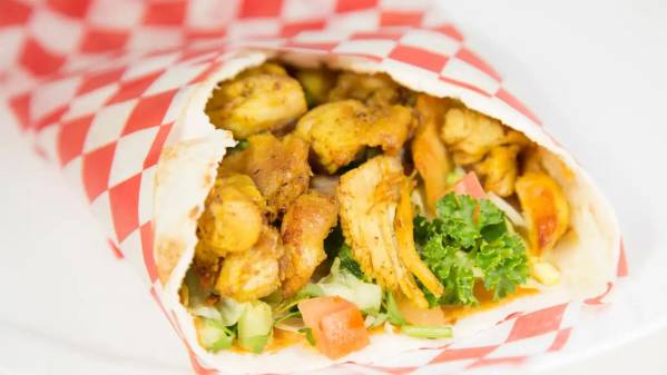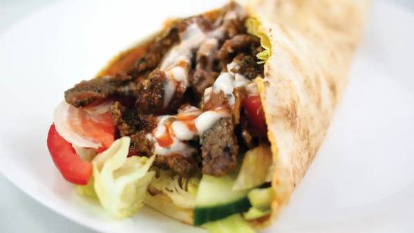 Thin Sliced Lamb seasoned with Homemade Spices. Served with Rice, Salad, hummus, Tzatziki and Homema...More